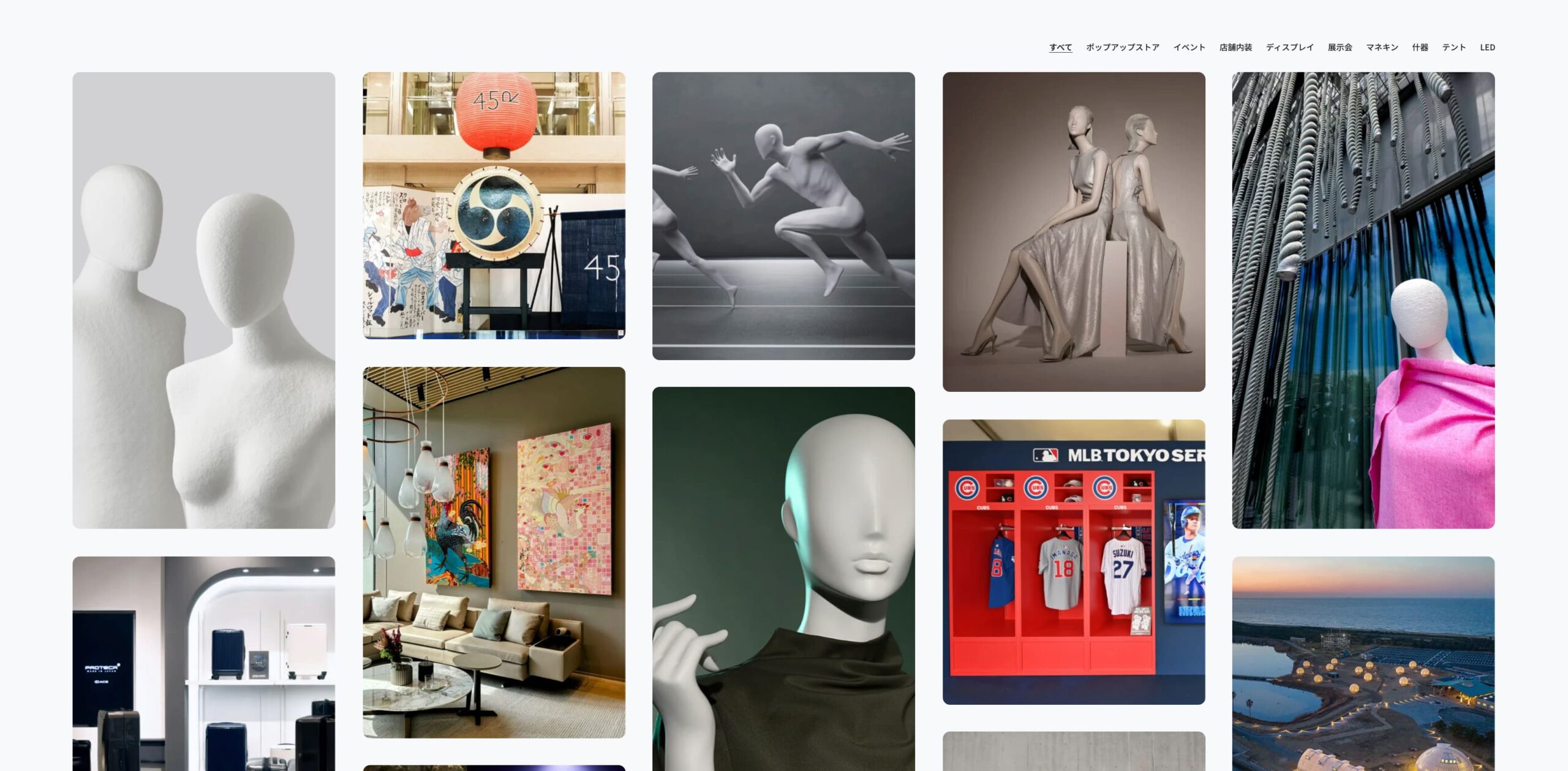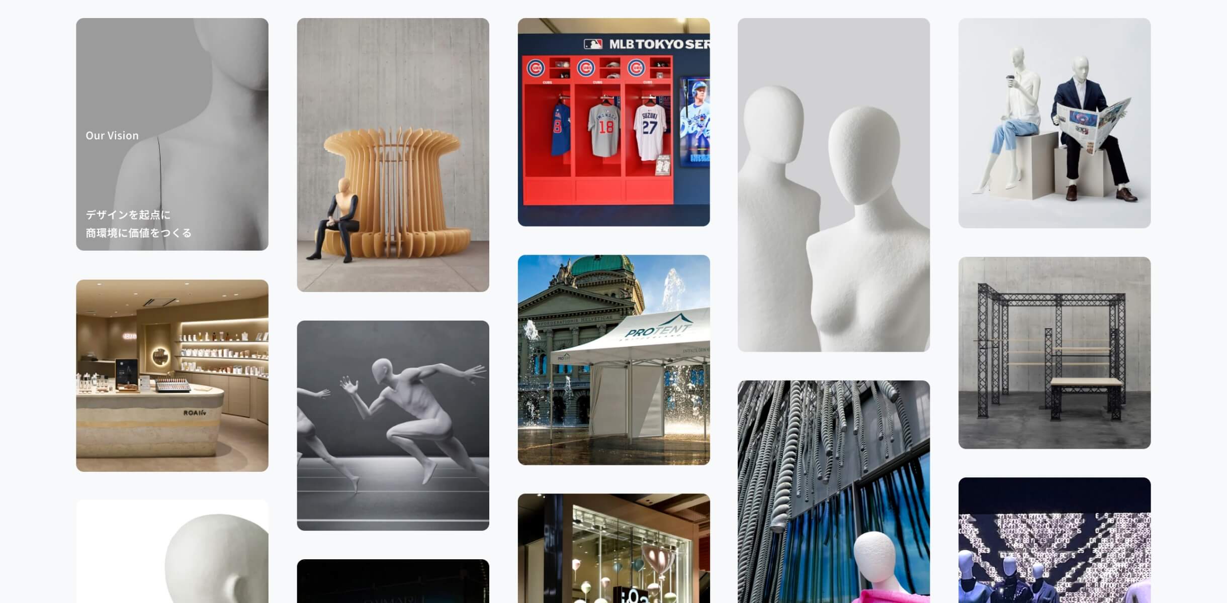 マネキンや店舗什器など商空間のデザインを提供する企業のウェブサイト
